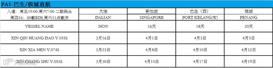 •Rotation:天津---大连---青岛---香港---蛇口---胡志明