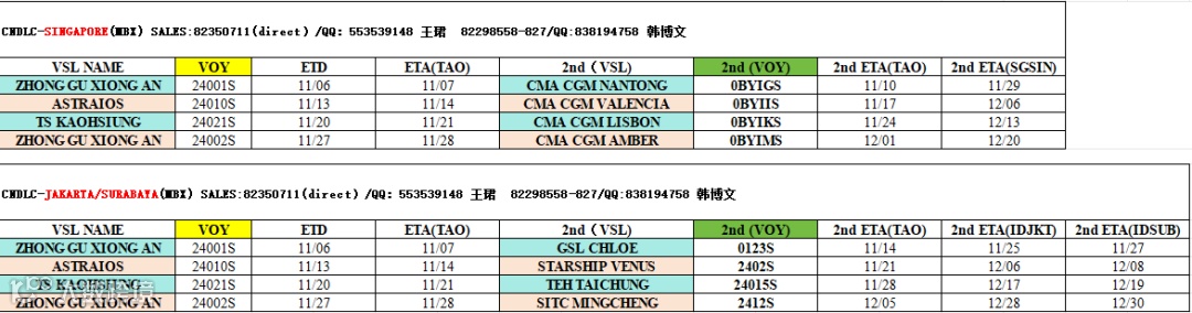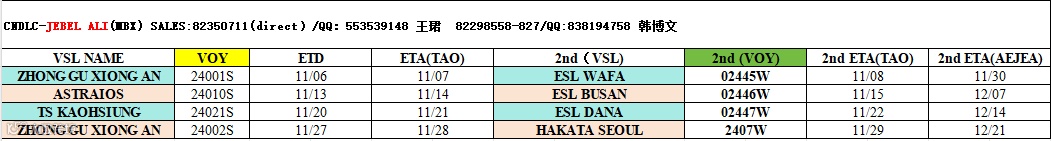 大 連 德 翔 2024 年 十  一 月 船 期 表 德翔海运大连指定代理