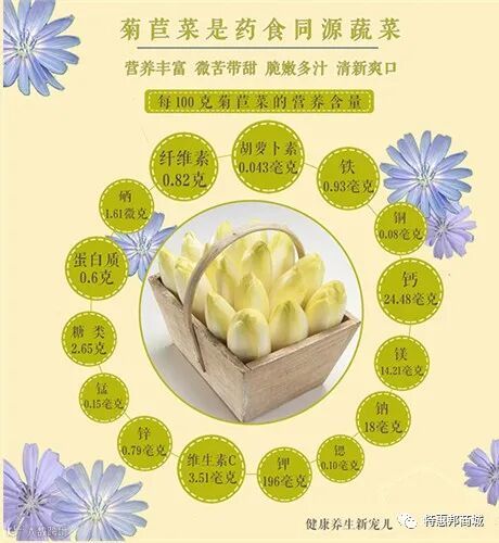很快菊苣火遍了欧洲。我们中国人一看,这不就是娃娃菜吗,对!可像可像娃娃菜,但不是。你看这其他蔬菜无法超越的营养成分。