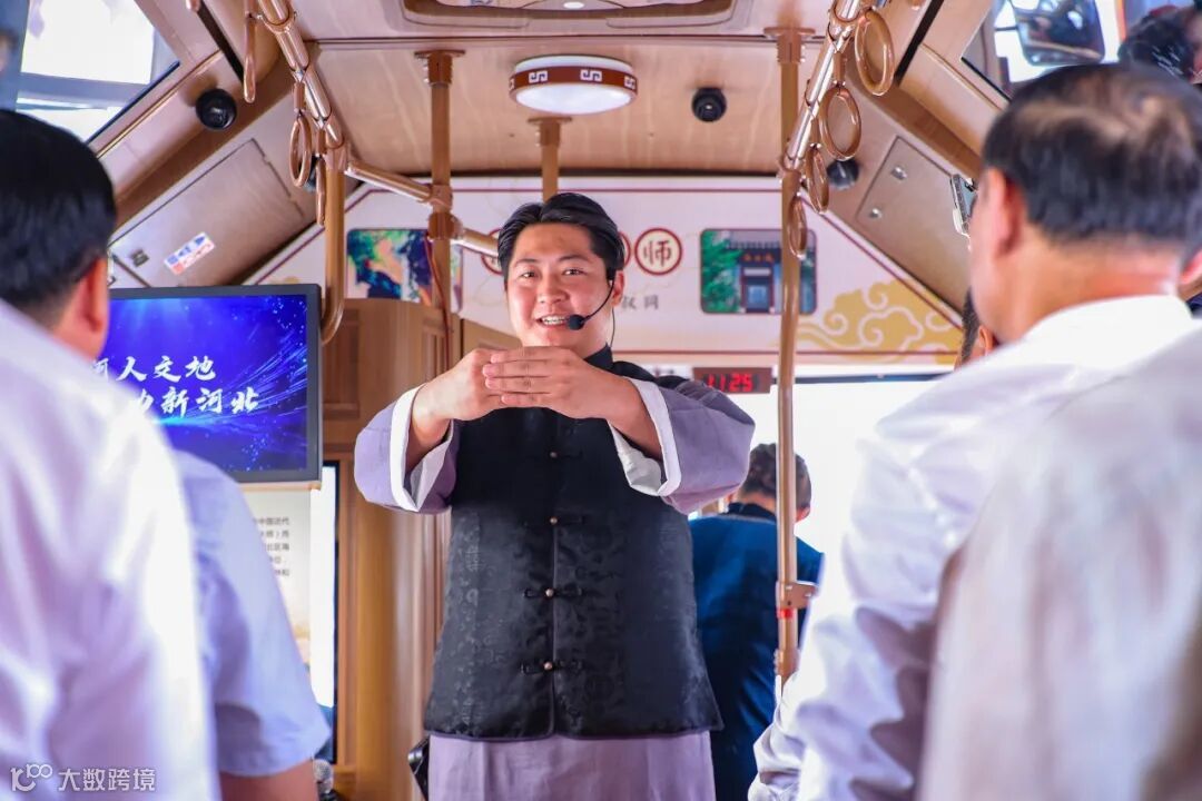 “津遇大师”号铛铛车沿途经过意风区、梁启超纪念馆、曹禺剧院、德云社、李叔同故居、望海楼教堂、天津之眼摩天轮、大悲禅院等河北区极具代表性的“网红打卡地”以及华为天津区域总部等河北区新的经济增长极。在梁启超纪念馆、李叔同故居纪念馆以及德云社站,NPC演员、相声演员分别上车与乘客进行了互动,带来生动有趣的沉浸式体验。一趟车遍览河北古今文化精粹,感受海河北岸百年历史,让河北区的历史沿革与人文内涵、津味美食与运河文化,承载于“津遇大师”号成为大家共同的记忆。天津博物馆副馆长、李叔同故居纪念馆馆长沈岩表示:“‘津遇大师’河北区专线铛铛车创新形式,特别加入梁启超、李叔同两位大师的相关演出非常有意义,让游客既能饱览美景,同时感受河北区深厚历史文化底蕴,互动体验感也进一步增强。”