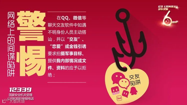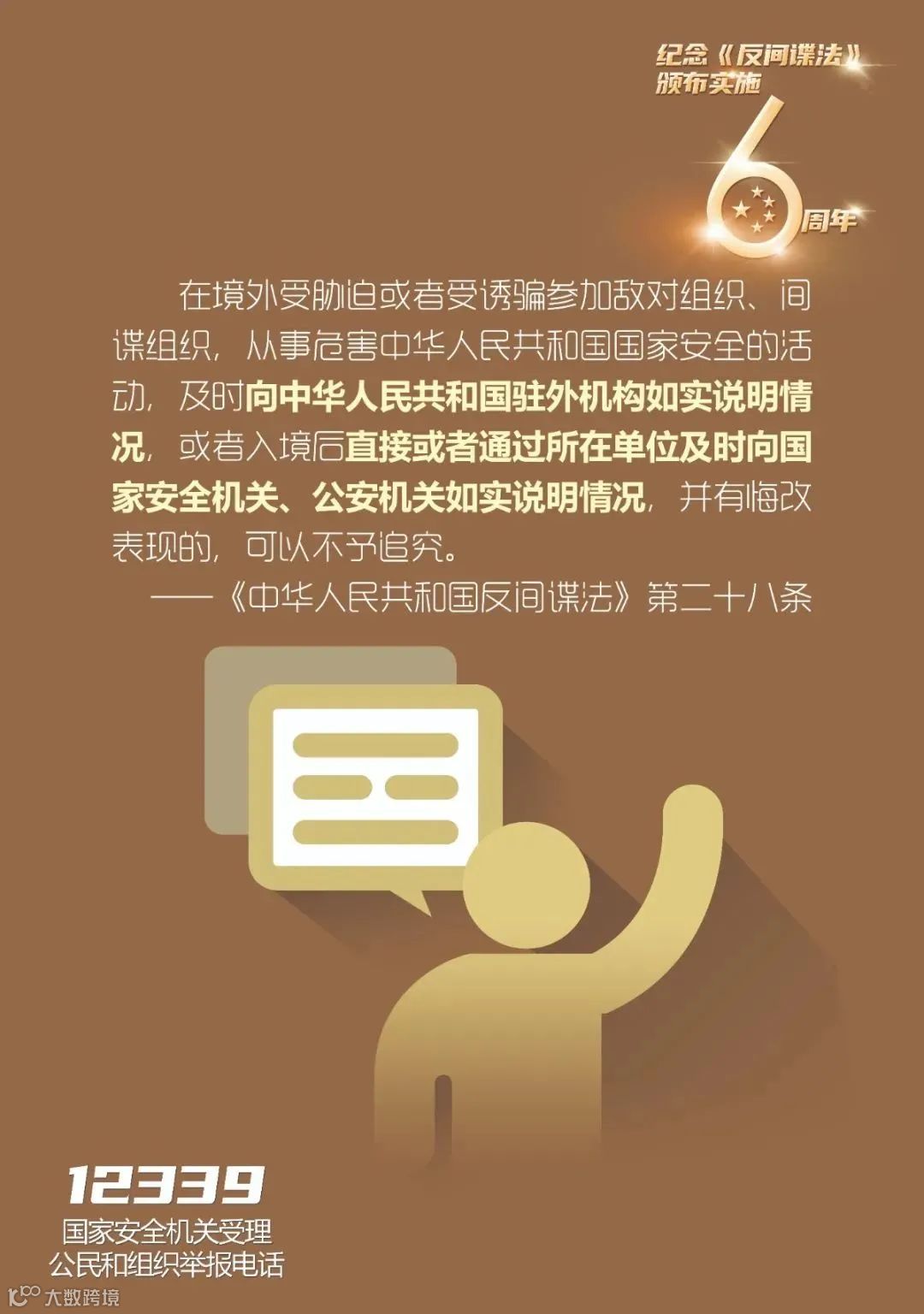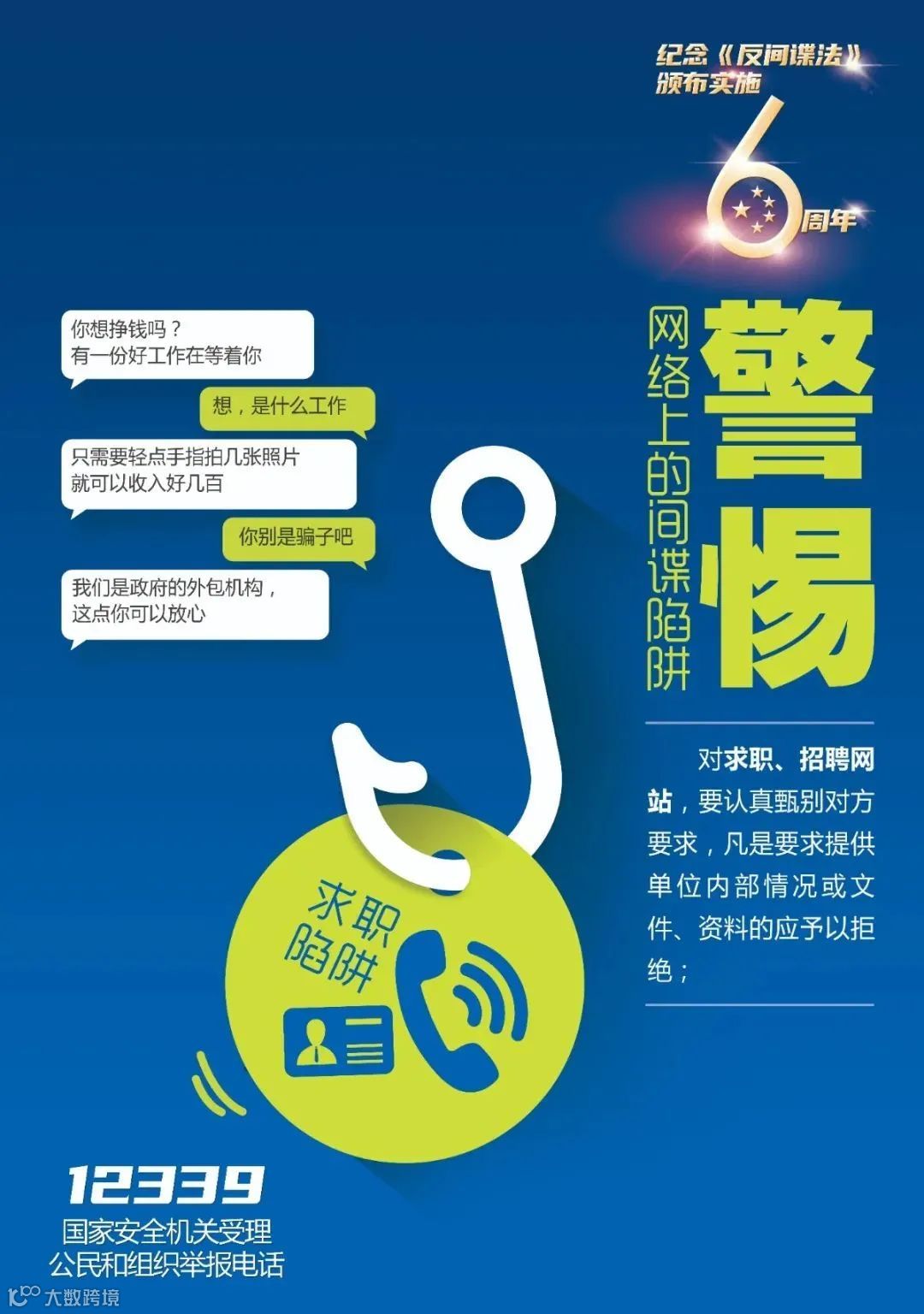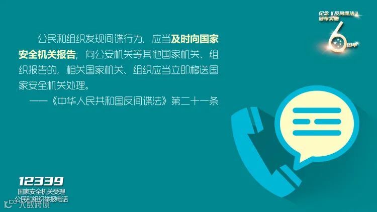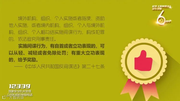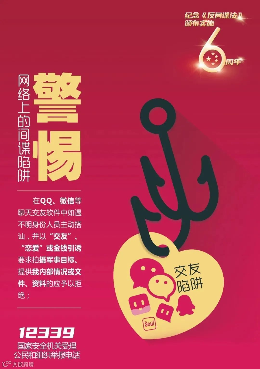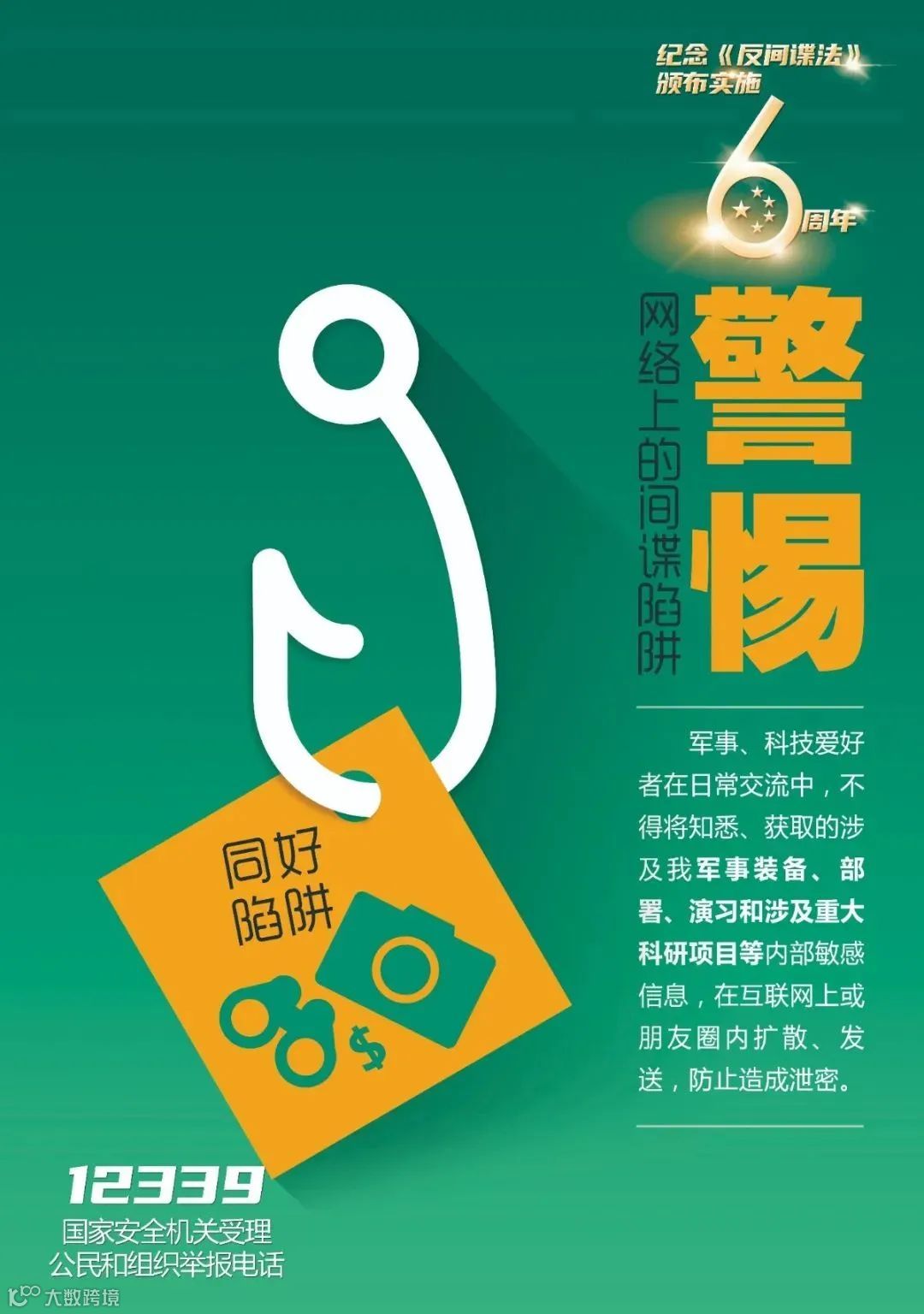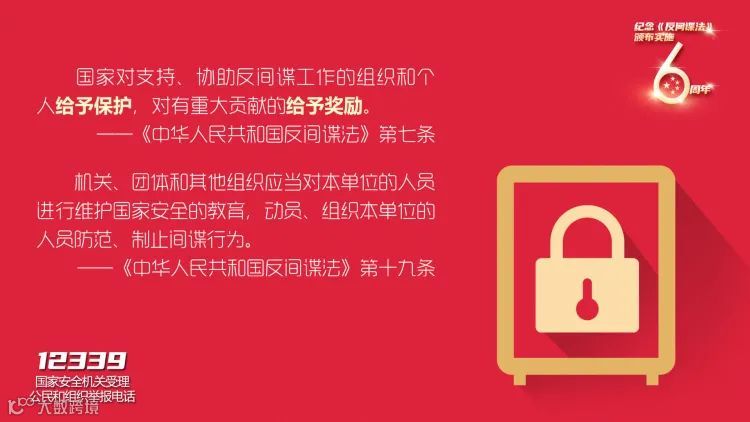 2014年11月1日,《中华人民共和国反间谍法》(简称:反间谍法)颁布施行,今年已经六周年啦。这既为反间谍工作提供了最基本的法律依据,又为在隐蔽战线贯彻落实总体国家安全观作出了具体的制度规划,进一步推进我国反间谍工作的规范化、制度化和法治化,为全面推进依法治国,发挥不可替代的重要作用。