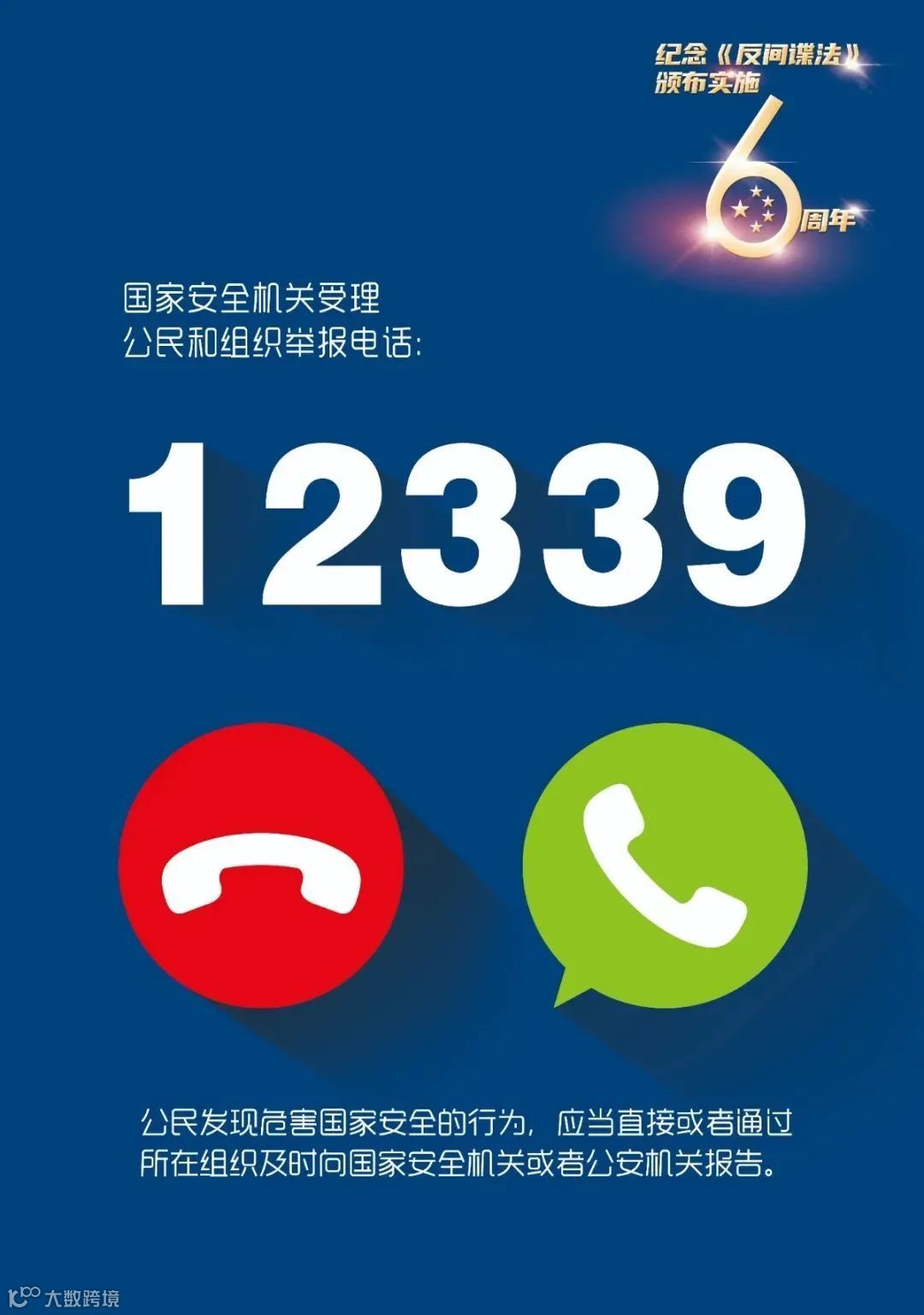 打赢新时代反间谍斗争,必须人人有意识、人人尽责任、人人作贡献。公民和组织如发现危害国家安全行为,请拨打12339国家安全机关受理公民和组织举报电话,或登录国家安全机关互联网举报受理平台www.12339.gov.cn进行举报。