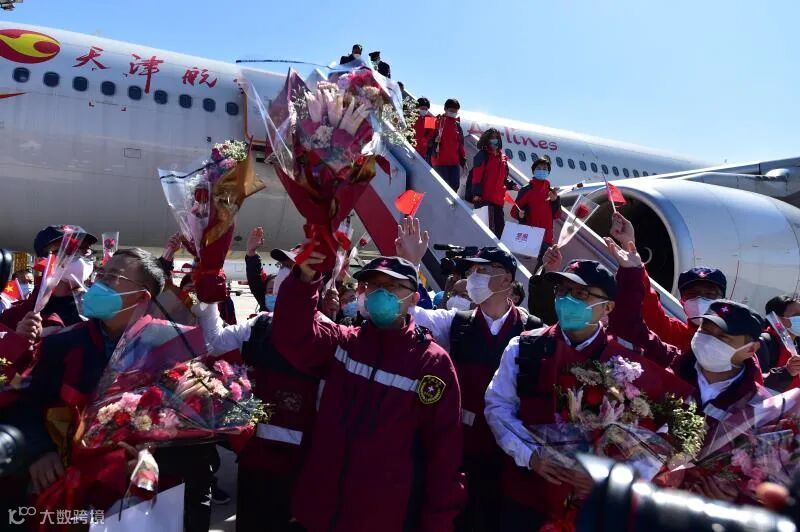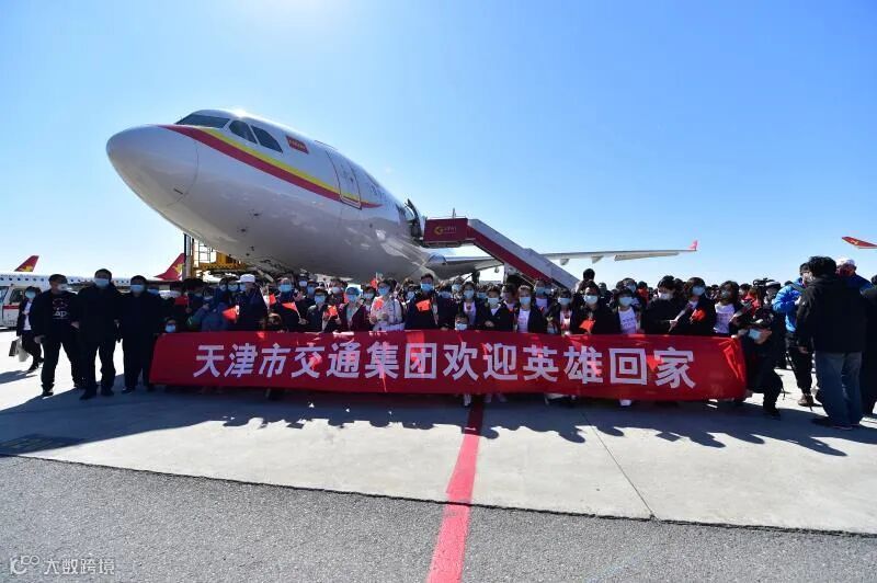 航空专机缓缓抵达天津滨海国际机场,第二批返程的天津援鄂医疗队回到了阔别一个多月的家乡。