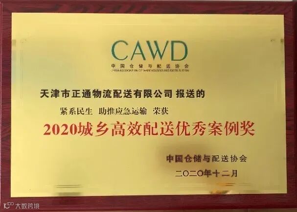 近日,由中国仓储与配送协会主办,以“新发展格局下的城市配送”为主题的第十二届中国城市物流发展大会在昆明隆重召开。天津市正通物流配送有限公司应邀出席会议,并荣获“2020城乡高效配送优秀案例奖”。