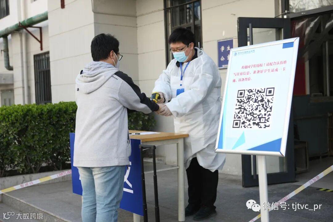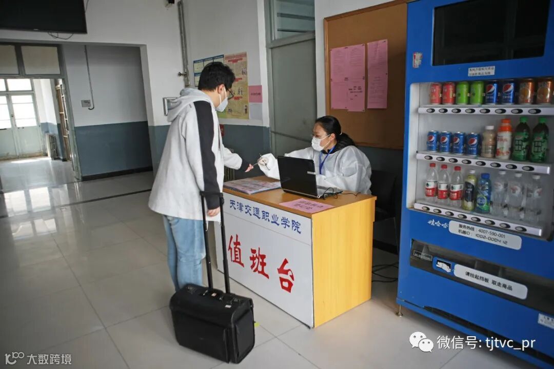 学生到所在二级分院报到处完成扫码报道并领取相关防疫资料