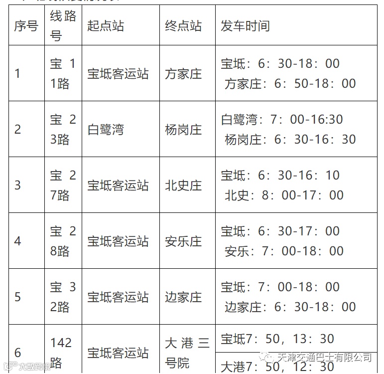 二、从6月9日起,天津交通巴士有限公司宝坻分公司执行夏季运营时间,即区内村村通部分线路首班提前、末班延后,已恢复运营并执行夏季运营时间的线路如下: