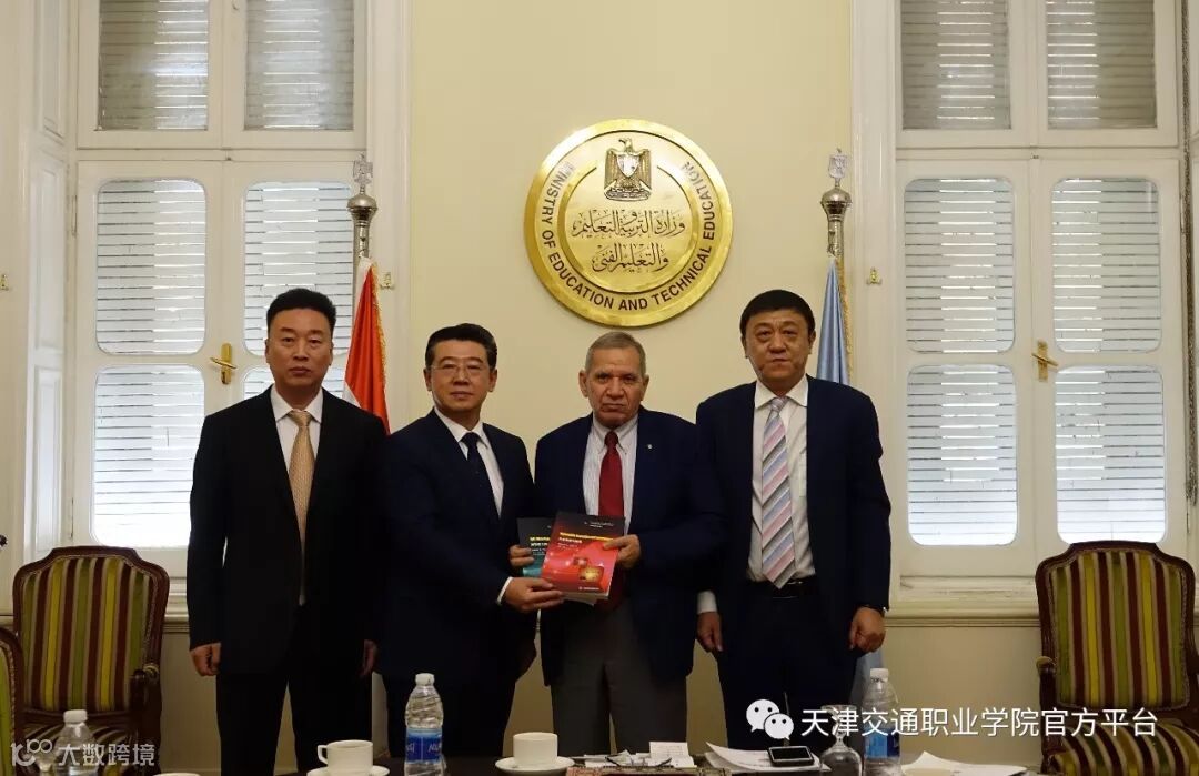 此外,代表团还陪同市教委领导访问了埃及基础教育与技术教育部,并考察了坐落在开罗高级维修技术学校的另一所鲁班工坊。在与副部长穆罕默德·穆罕默德·穆贾希德·厄尔尼尼的会谈中,他向中方通报了项目的进展情况和设备免税、清关手续上目前所取得的最新进展,并向大家介绍了3+2、双证书等埃方对鲁班工坊运营的积极设想;此外他还提到,基础教育部正在为鲁班工坊项目广纳人才,希望中方给与师资培训上的大力支持;同时,副部长还对签约、揭牌等事宜与中方进行沟通,希望双方积极准备。天津市教委白海力副主任代表联合团组向副部长赠送了中方针对鲁班工坊专门制定的实训大纲、教学标准及实训教材。