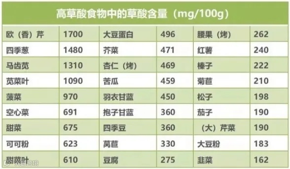 草酸进入血液循环到达身体各部位,与钙结合后形成草酸钙,沉淀在身体中,造成肾结石等疾病。短期内摄入大量草酸,可能造成急性肾损伤。