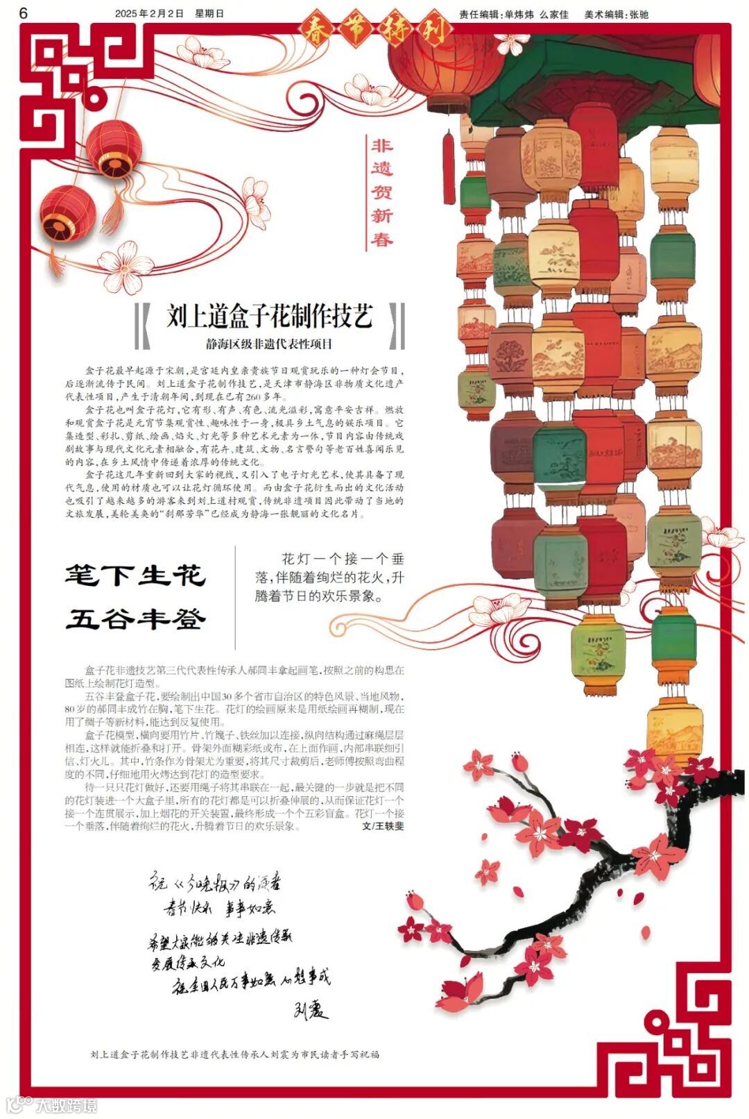 我相信这个梦永远不会变成现实,因为我们会将它一直传承下去。现在村里建立了盒子花基地,办起了盒子花的非遗研学,像天津商业大学等院校都有几百名学生深入了解盒子花。盒子花灯,肯定会一直亮着。