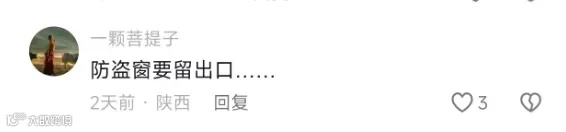 如果您确有安装防盗窗的必要,至少要给您和家人留出逃生通道。可以选择在防盗网上留一扇“逃生门”,尺寸一般不小于1.0×0.8米,平时可以上锁,并把钥匙放在家庭成员都知道的地方。