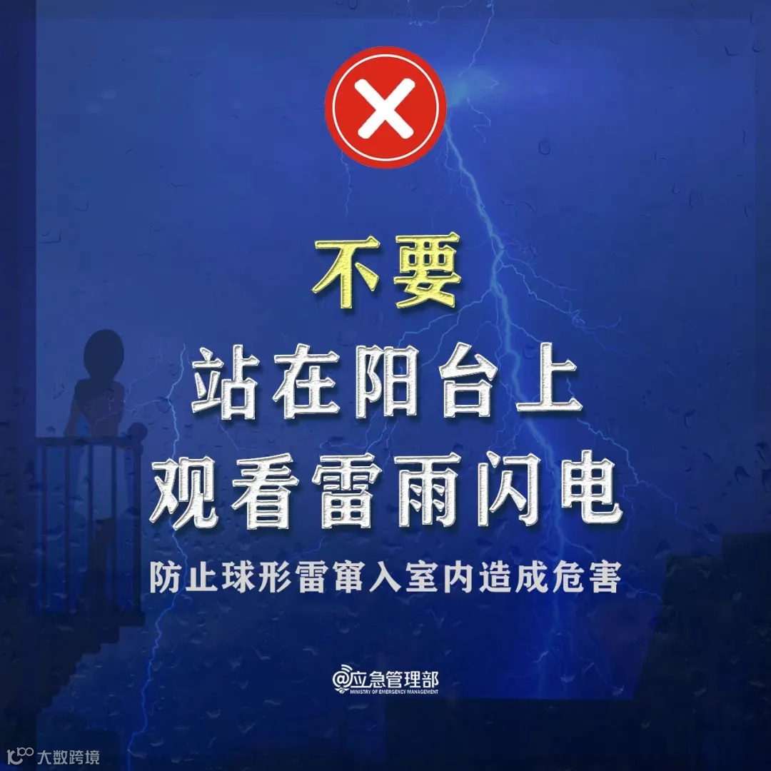不要把头和手伸出窗外或站到阳台上,以防被雷击中。