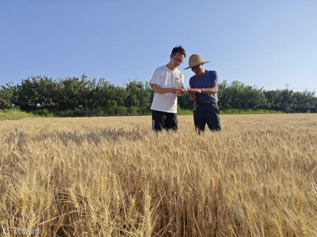 前小屯村党支部书记张凯和种粮大户牛恩甫观察小麦收成。余璐摄