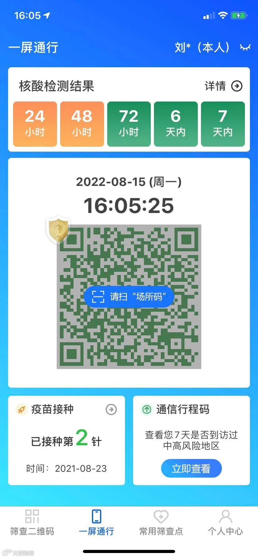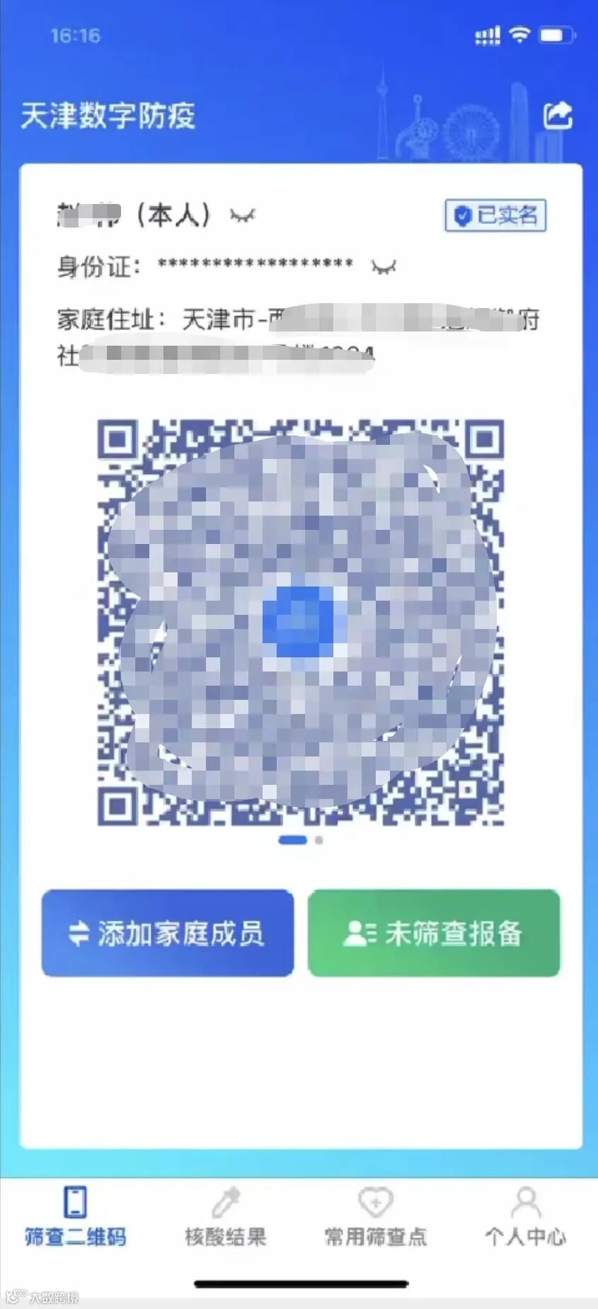 市民实名注册后,生成市民本人的核酸筛查二维码,并支持协助家任代办。