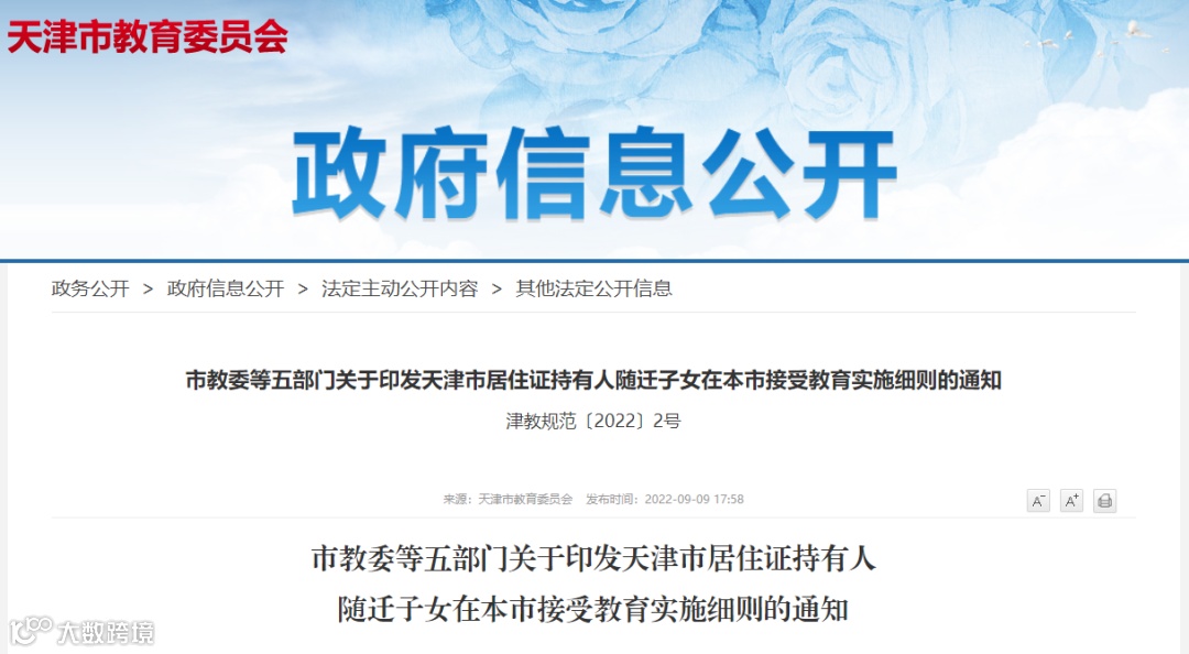 近日,天津市教委等五部门发布关于《天津市居住证持有人随迁子女在本市接受教育实施细则》的通知以及政策解读,《细则》中明确了天津市居住证持有人随迁子女在津接受义务教育、报考职业院校、普通高中和普通高等院校等相关政策。该细则自公布之日起实施,2026年12月31日废止。