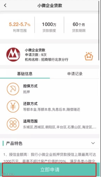 2、企业选择合适的融资产品直接点击“立即申请”填写相关资料后,平台将进行对接。