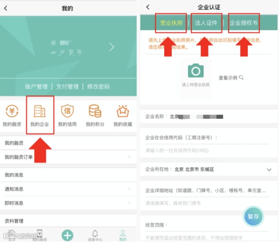 2、注册完毕后,用手机号登录,点击“我的企业”,进行企业认证。认证包含:营业执照、法人证件、上传企业授权书三项认证。需完善相关信息,便于平台更好的为企业进行融资对接服务。