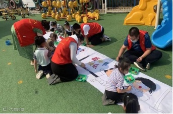 朝阳街道金海园社区党群服务中心依托新时代文明实践站,充分发挥“五爱教育”阵地作用,开展“献礼教师节,感恩教师情”主题活动,志愿者为孩子们讲解教师节的由来和尊师重道故事,带领孩子们制作贺卡表达对老师的爱,并组织开展“十米长卷感师恩”绘画活动,活动中小朋友们用最美丽的色彩向老师们献礼。