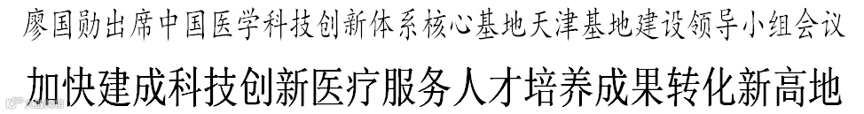 本报讯 (记者 米哲)19日下午,中国医学科技创新体系核心基地天津基地建设领导小组会议在津召开。市委副书记、市长廖国勋和中国医学科学院北京协和医学院院校长王辰出席并讲话。