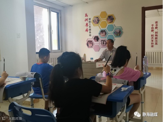 不仅是罗振锋,在静海镇,主动请缨为民服务的志愿者比比皆是。在禹洲尊府社区,书法爱好者王能武每周日下午四点,都会在社区党群服务站开展“禹洲书香”活动,耐心细致地为社区儿童讲解书法知识,传承书法技艺,进一步丰富辖区青少年儿童的课外生活,提高孩子们的书法写作水平。