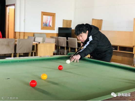 在天立公司文化娱乐活动室里,员工姜志勇正在打台球。他告诉记者,在工作闲暇之余,就来活动室和同事们一起打打球、看看书,放松身心,再以更加饱满的精神状态投入到工作当中。
