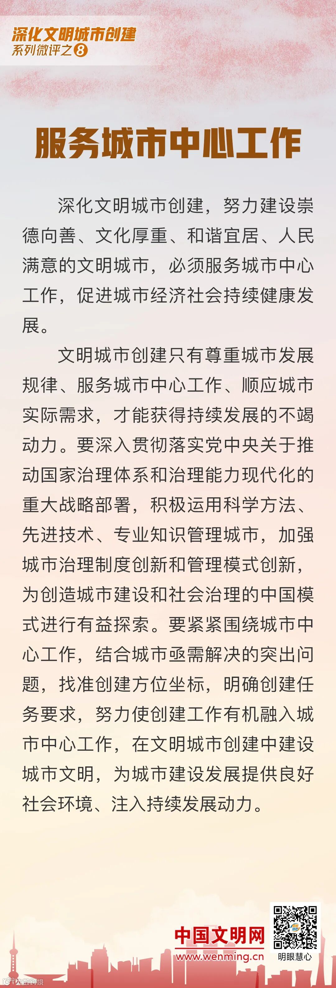 【创文进行时】深化文明城市创建系列微评之八:服务城市中心工作