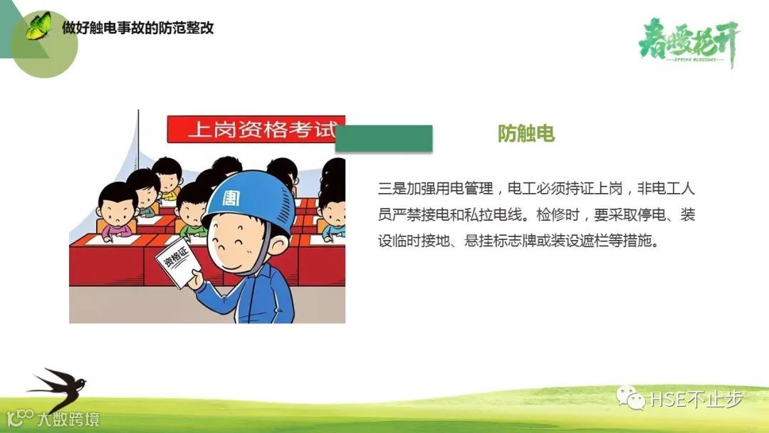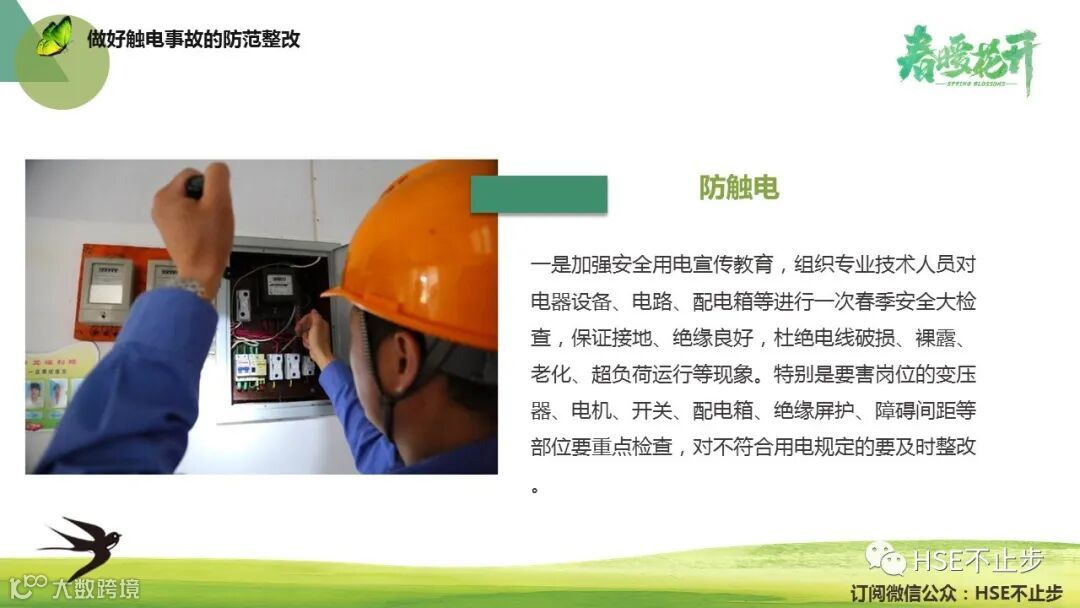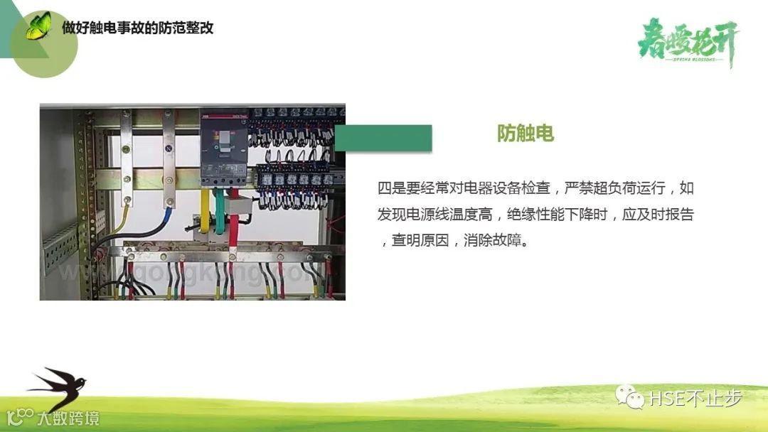 春季昼夜温差大,电气设备易受潮,地面导电性增强,容易造成触电事故的发生。