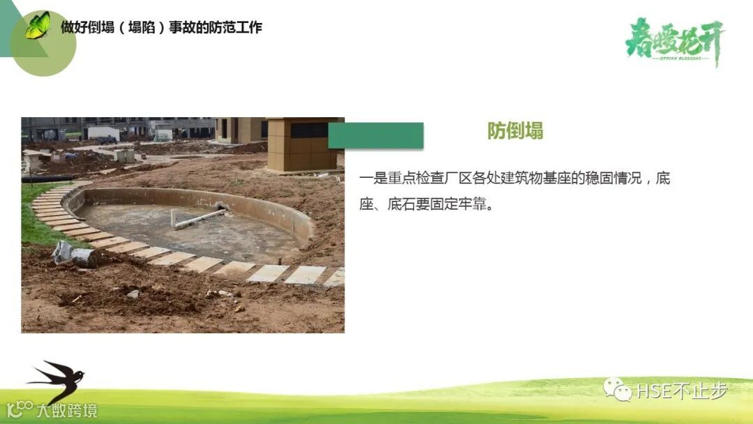 ★重点检查厂区各处建筑物基座的稳固情况,底座、底石要固定牢靠。