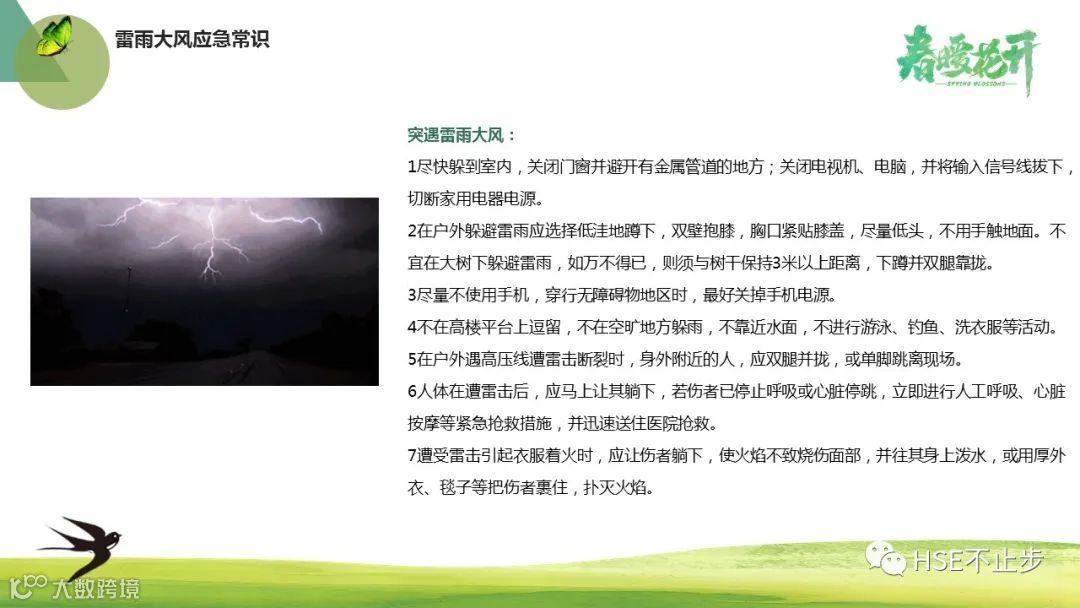 ★遇雷时,要在屋顶下方稍有空间的房屋躲避,不要站在高大的单独树木下,避免靠近或接触高处的金属物体。