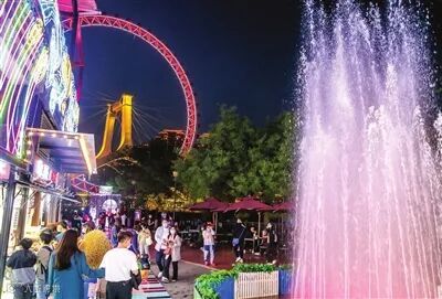 摩天轮夜市, 市民享受夜间休闲。本报记者 吴迪 摄