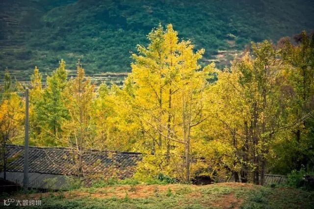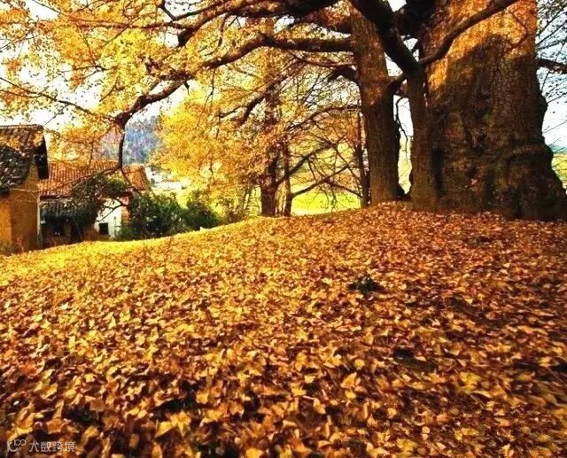 湛蓝的天空下,一间间纯朴的小瓦房,与古老的金色银杏树交相辉映,美得像一幅幅乡村的油画。