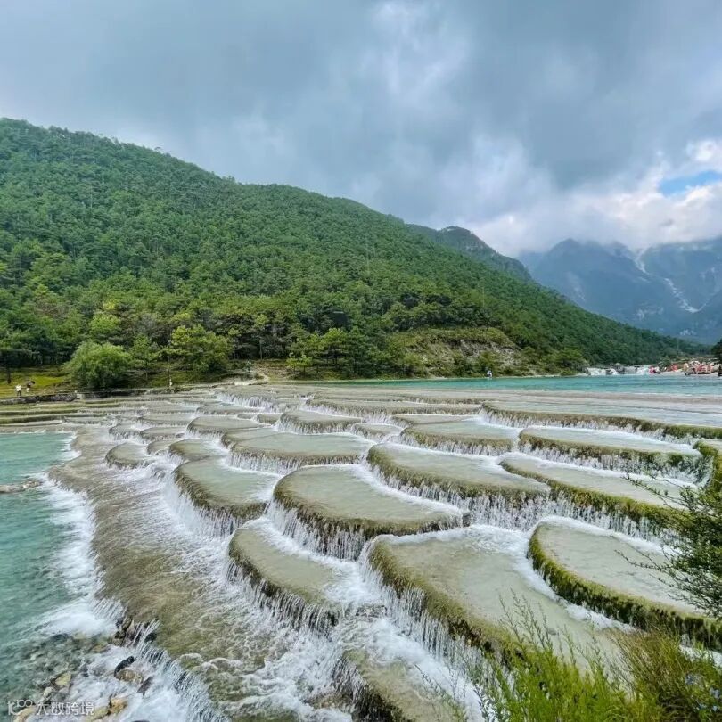 随后乘坐景区电瓶车前往蓝月谷,美丽的蓝月谷水质清澈,湖水湛蓝如玉。