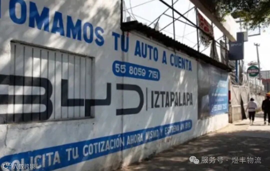 ▲墨西哥居民墙上贴着比亚迪汽车广告