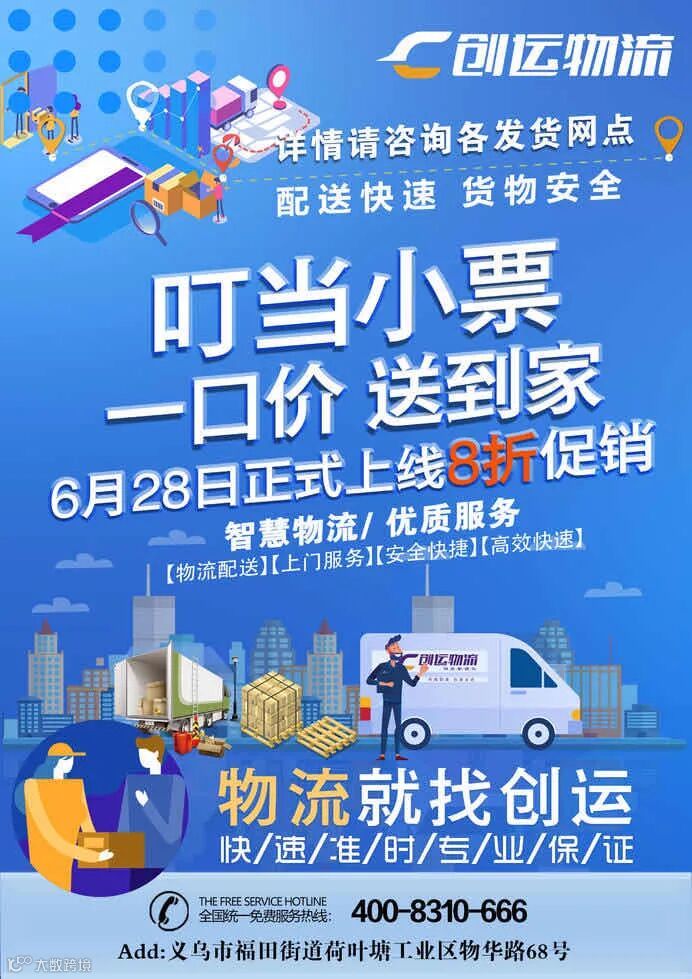 疫情当下,创运物流逆势创新,推出叮当小票全新产品,一口价,送到家!为您省时省心,推广期间促销价8折优惠!