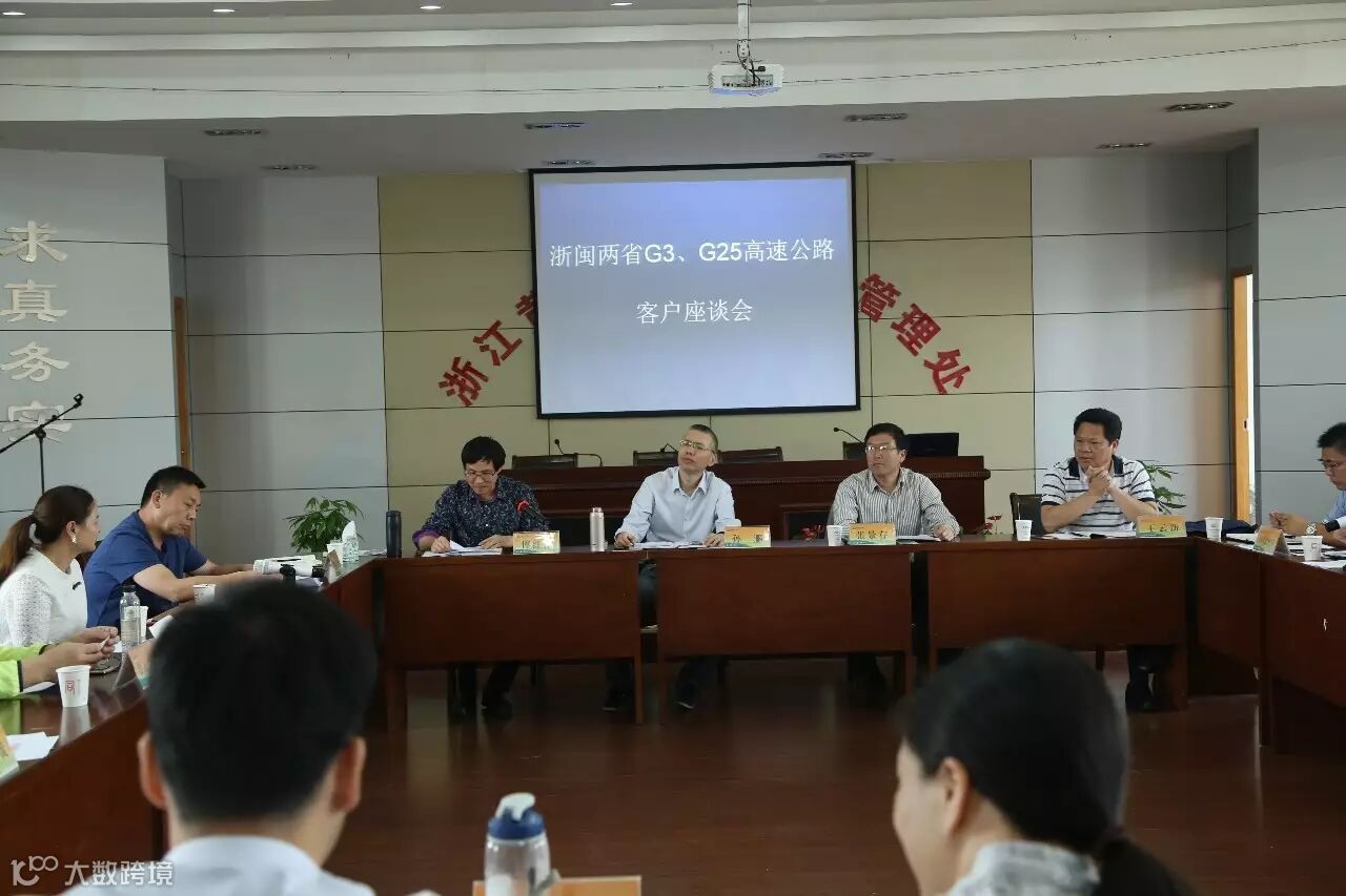 2016年5月18日下午,在浙江衢南管理处四楼多功能会议室(黄衢南高速公路江山收费所),一场别开生面的现场交流会正在热闹进行——浙闽两省G3G25高速公路客户座谈会。会议由浙江交通投资集团有限公司、浙江黄衢南高速公路有限公司、福建省高速公路有限责任公司、福建省高速南平分公司、三明分公司、龙岩分公司组织,参会企业有创运物流、快捷物流、致远物流、粤发物流等物流公司。