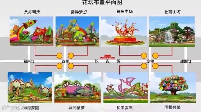 另外,长安街建国门至复兴门沿线也进行了花卉布置,各类地栽花卉总计2.5万平方米。