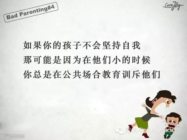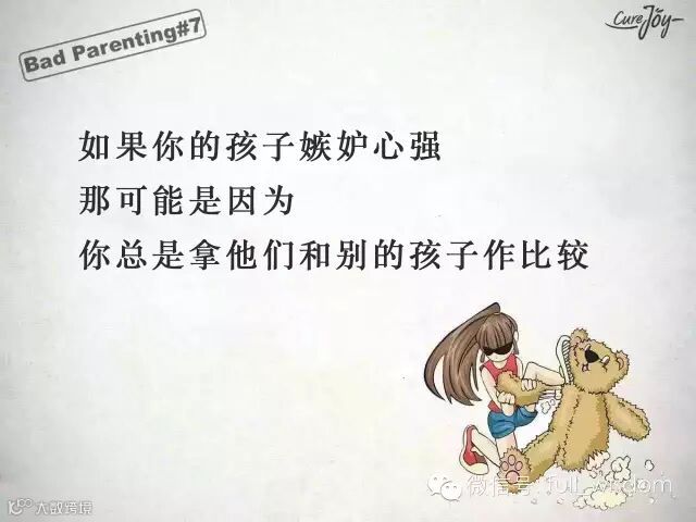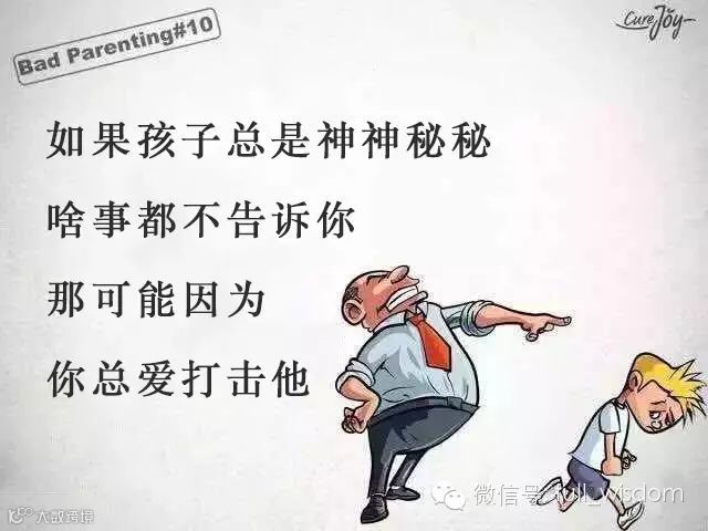 看看下面这组漫画,孩子成长中出现的问题几乎都是家长不良教育方法产生的结果,孩子的问题99%都是家长的问题。正如有句名言所说“每瞬间,你看到孩子,也就看到了自己,你教育孩子,也是在教育自己,并检验自己的人格。”希望这样深刻的对比,能引起爸爸妈妈们对自己教育行为的审视。