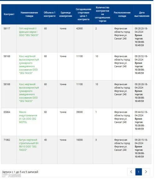 2024年4月18日乌兹别克斯坦国家原料商品交易所挂单信息