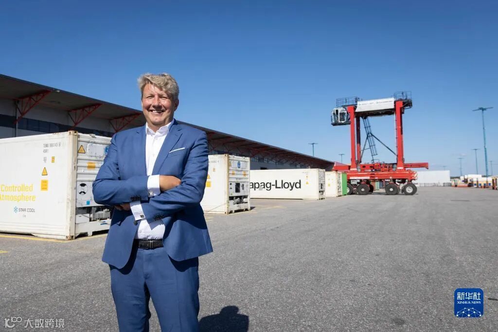 ▲ 8月15日,在芬兰赫尔辛基一处港口码头,努尔米宁物流公司首席执行官奥利·波赫扬维尔塔站在集装箱货柜旁。新华社发(马蒂·马蒂凯宁摄)