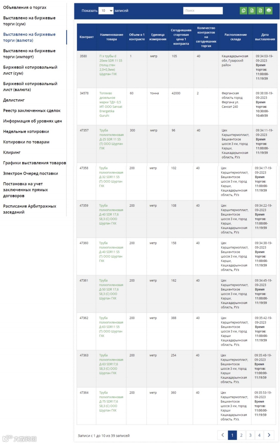 2023年9月19日乌兹别克斯坦国家原料商品交易所挂单信息