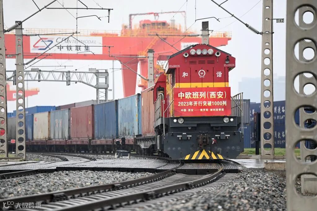 ▲ 3月23日,X8489次中欧班列从西安国际港站驶出。(新华社记者李一博摄)