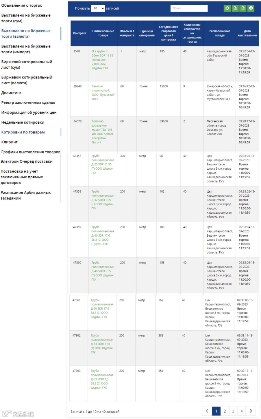2023年9月13日乌兹别克斯坦国家原料商品交易所挂单信息
