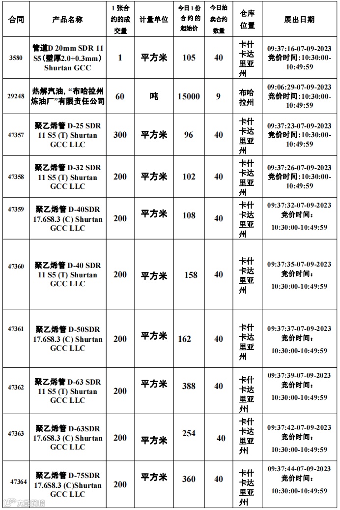 2023年9月7日乌兹别克斯坦国家原料商品交易所挂单信息