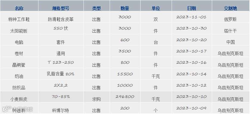2023年11月14日亚欧国际物资交易平台挂单信息