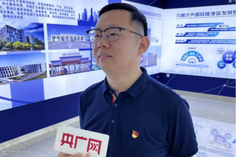 乌鲁木齐国际陆港区管理委员会产业发展部部长陈志宏接受采访 (央广网发 李杰 摄)