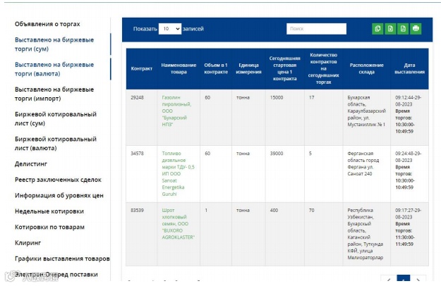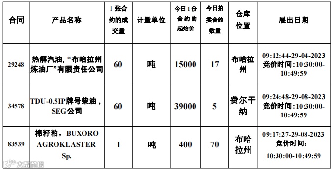 2023年8月30日乌兹别克斯坦国家原料商品交易所挂单信息