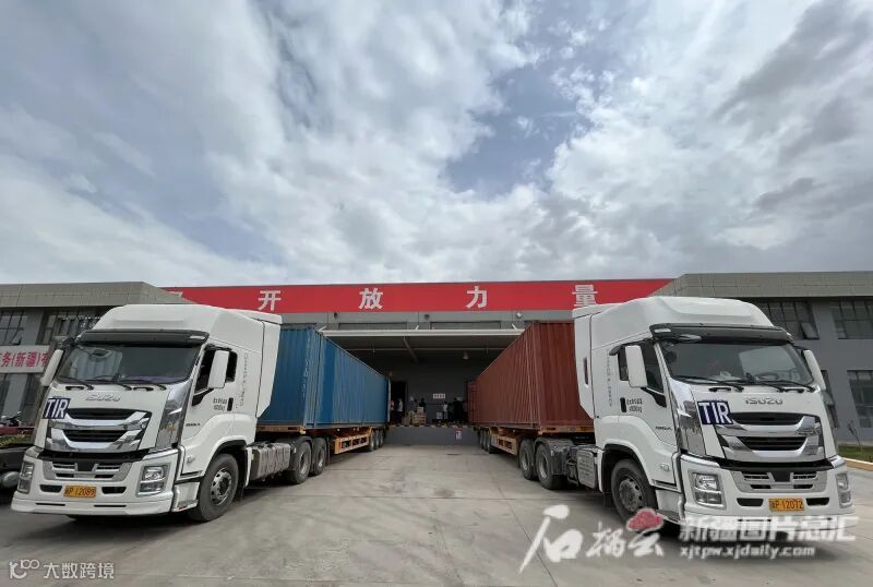 6月2日,“高质量发展调研行”大型全媒体主题采访团来到新疆喀什经济开发区。在喀什综合保税区内,工人们正忙着给3辆停在中顺电子商务(新疆)有限公司门口的大货车装卸货物,3辆大货车都贴着TIR标识(国际公路运输系统);在喀什泓宇恒通国际货运代理有限公司门口,停放着5辆满载新能源汽车的轿运车,它们将前往吉尔吉斯斯坦、塔吉克斯坦和乌兹别克斯坦;在喀什海关,一辆辆满载货物的卡车正在等待办理通关手续……