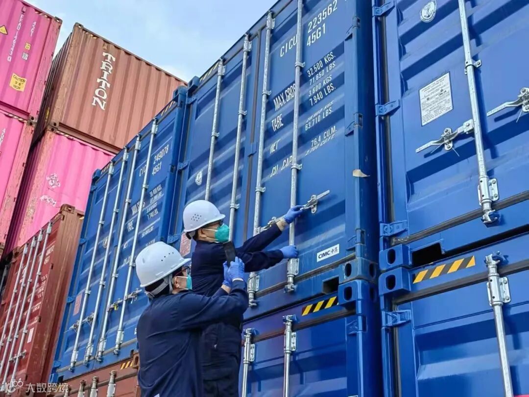 广州海关所属广州车站海关关员对中欧班列集装箱进行验核