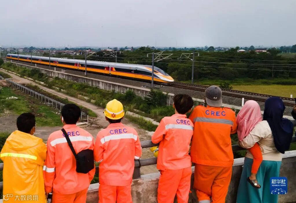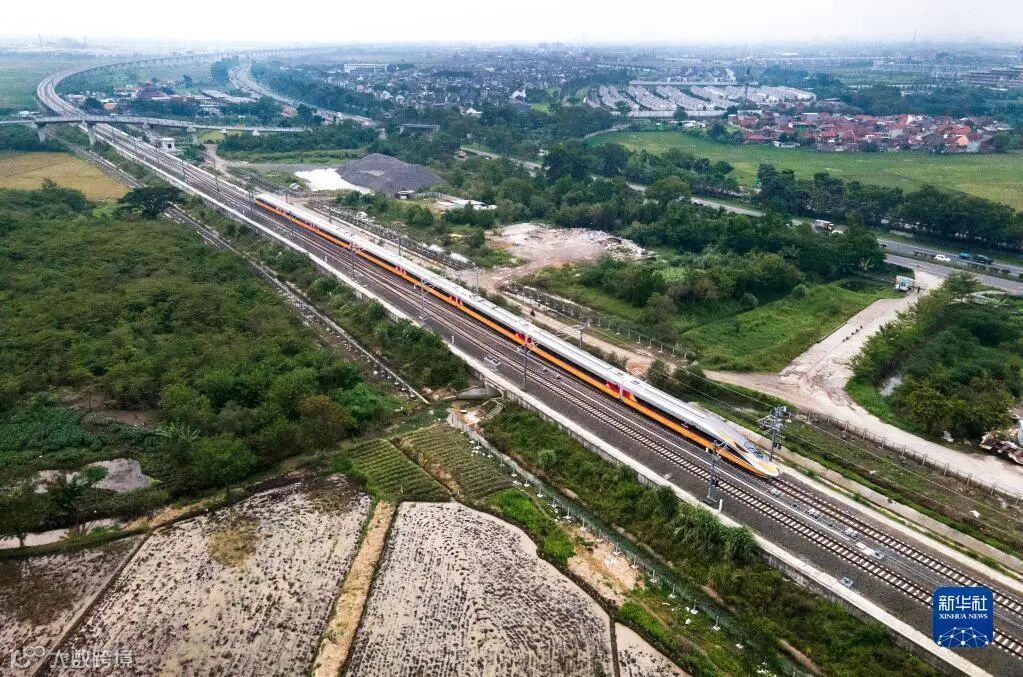 目前,雅万高铁建设进展顺利,全线13座隧道全部贯通,箱梁架设工程完成,正线铺轨正有序推进;雅万高铁高速动车组和综合检测车研制完成;德卡鲁尔车站至4号梁场间14公里线路建成,并成功开展了动车组列车在接触网带电情况下的热滑试验。