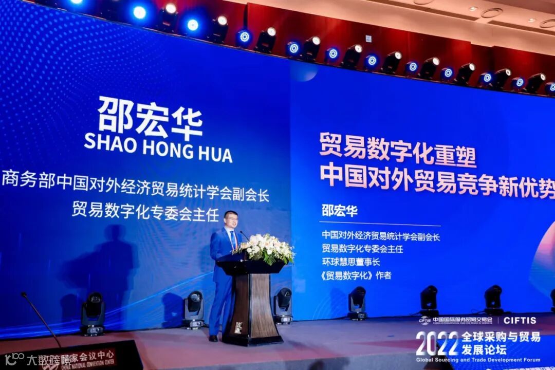 9月4日,作为中国国际服务贸易交易会重要活动之一的“全球采购与贸易发展论坛”在北京国家会议中心举行。中国对外经济贸易统计学会副会长、贸易数字化专委会主任、环球慧思董事长邵宏华以《贸易数字化重塑中国对外贸易竞争新优势》为题发表主旨演讲。