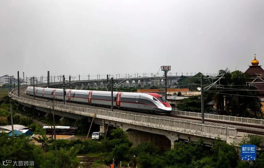 ▲ 11月9日,在印度尼西亚西爪哇省万隆市,一列高铁动车组正在雅万高铁试验段进行热滑试验。新华社发(焦宏涛摄)